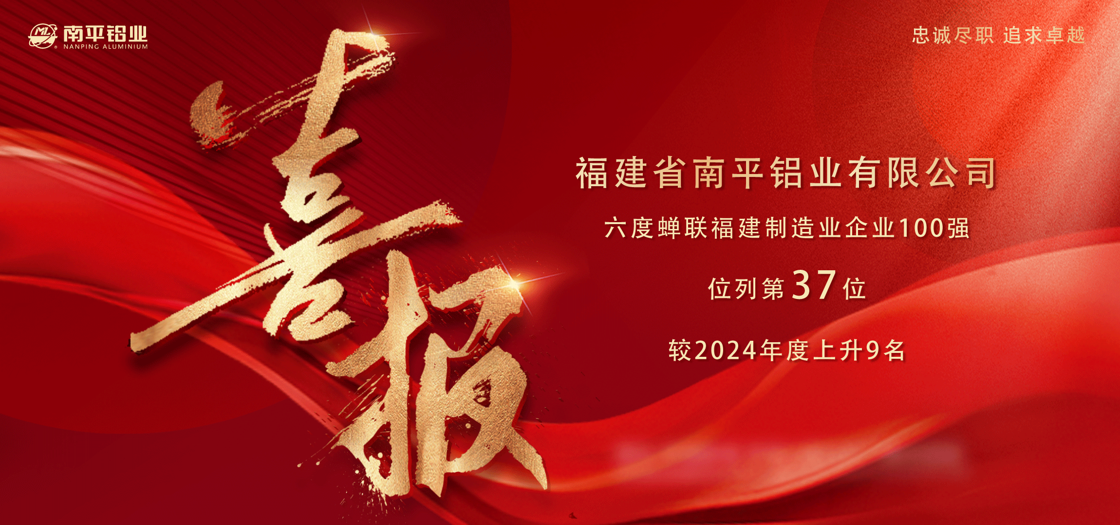 喜报!南平铝业六度荣登福建制造业企业100强榜单